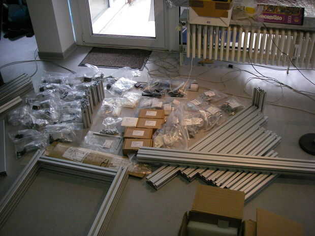 Cuando se extienden en el piso de la sala de estar, los componentes apilados muy impresionante. Para evitar errores tontos, todas las piezas se midieron y marcaron.