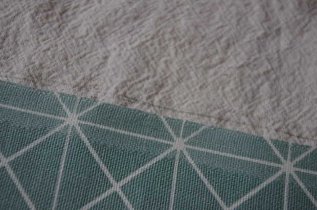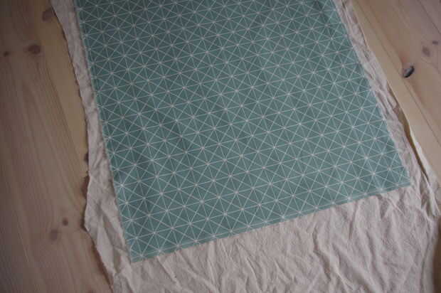Comenzar por medir la pieza azul de la tela. Cuando se ajusta la medición, se usa para delinear el forro sobre la tela blanca. Utilicé un lápiz para hacer esto, como tiza blanca realmente no funciona con la tela blanca.