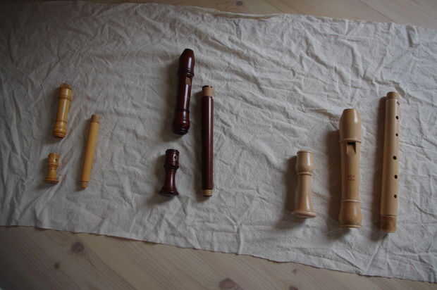 Después de medir cortar el forro y coloca mis flautas en él, para ver donde tendría sentido colocar los bolsillos para fijar las flautas más tarde.