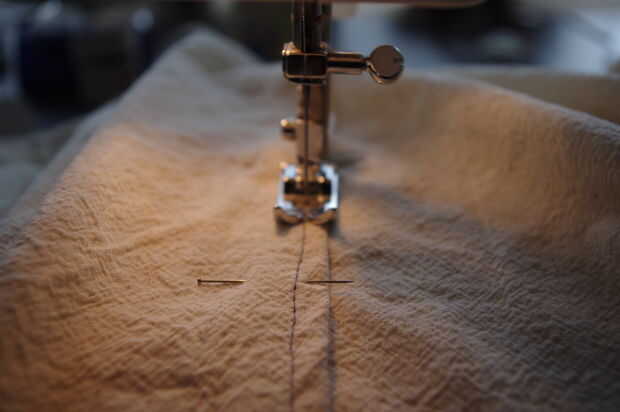 Me cubrió y cosido a las piezas de Plaza del bolsillo a lo largo de los lados, para darles los bordes aseados.