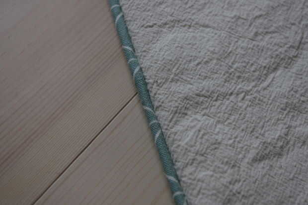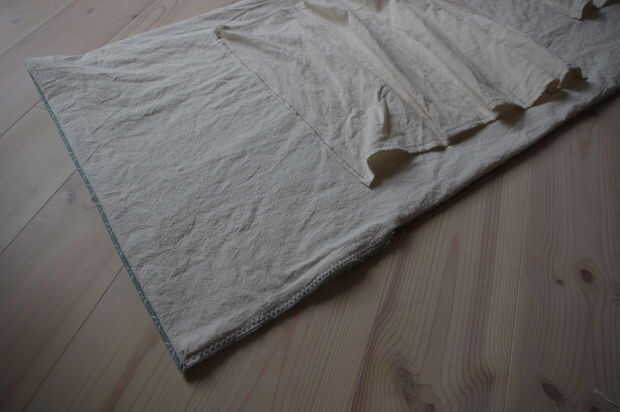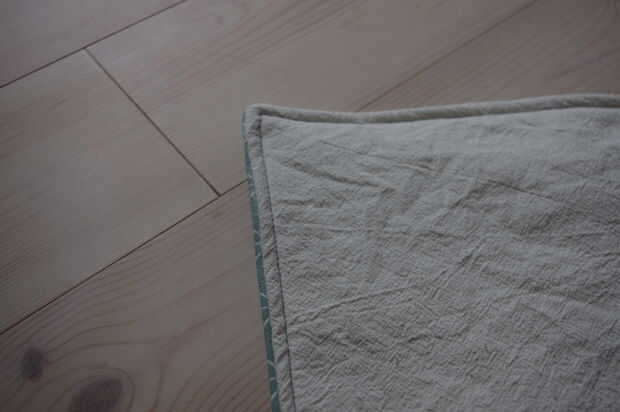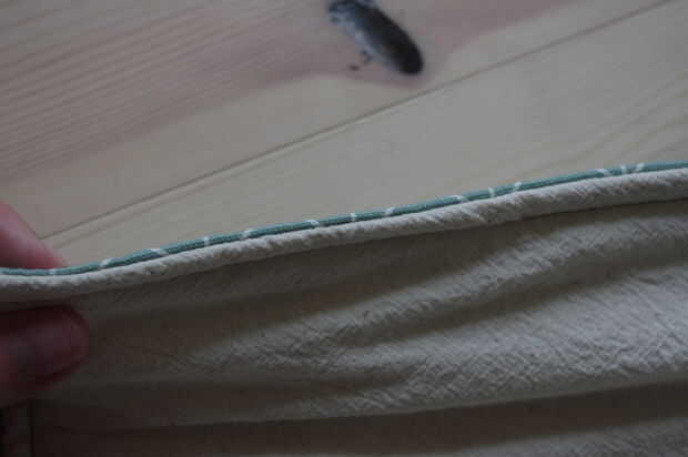 El último paso es el sándwich los dos trozos de tela y enfrentan a los lados del derecho juntos. Entonces cubrió junto y cosido a lo largo de los bordes. (El hilo azul parecía realmente bien aquí)