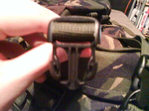 luego enrosque la mitad masculina de la hebilla en la correa de amarre existente