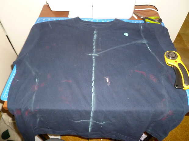 Para el patrón trasero, usted necesitará cortar el yugo que va desde la costura de la manga a la costura de la manga con una pequeña inmersión en el medio. A mano alzada la línea de tiza, decidir que medio se ve mejor, doblar por la mitad y cortar a lo largo de la línea de manera que ambas mitades son iguales.