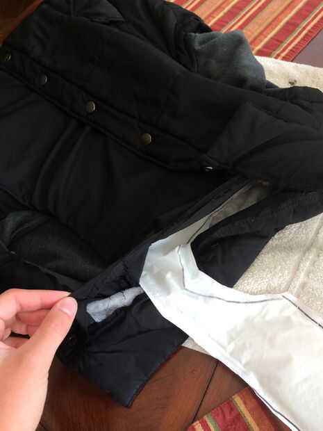 Con la vejiga completa todo lo que queda es insertar en el forro de su chaleco y coser el forro hacia atrás. Rasgó las puntadas por el escote de mi chaleco, que me permitió deslizar los paneles posteriores y dos paneles frontales con mínima restitching.