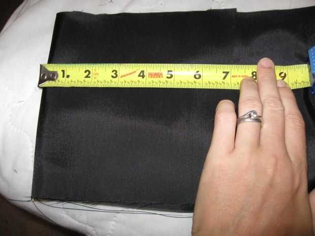 Cortar 4 piezas de 6 "x 7" de nylon, luego cortar cada uno en medio de 8 unidades de 3 1/2" por 6". Éstos se utilizará como fichas para enganchar las correas elásticas en los casos. Cada pestaña contribuye 2" a la longitud de la correa adjunta.