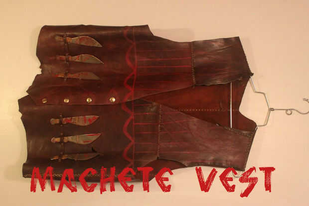 Machete (Danny Trejo) es un loco mal con nada que perder! Hice este chaleco de cuero de piel de venado. Pasé alrededor de 60$ en los desechos más grandes que he podido encontrar de mi zapatero de barrio cuidado (BKB cuero Lawrence, KS), este proyecto llevó cerca de 40 horas para completar. Es necesaria la paciencia.