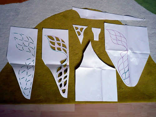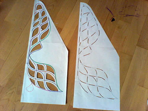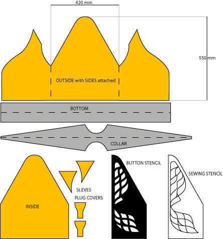 www.massage-me.at usted encontrará un archivo de Illustrator del patrón que usted puede escalar al tamaño original (ver medidas de referencia). Para rastrearlo puede imprimir y cortar el patrón o proyectar sobre el neopreno. Los trozos de naranja en el patrón deben hechos del neopreno; las piezas grises en el patrón se pueden hacer fuera de otro tipo de material si lo desea.