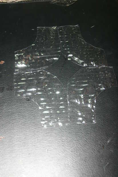 Empecé primero por cortar los pedazos del hombro-ésos no se dibujan en el plano boceto, pero son parte importante de la construcción del chaleco