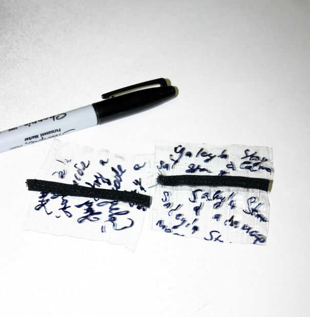 Cosalas juntas y pespuntear el ribete negro en el centro.