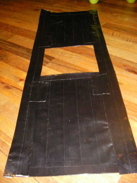 OK esto es un poco simple, para la mayoría vas a ser capas ducttape. Primero coge un periódico viejo, un marcador de color oscuro, tijeras, una camisa que le cabe bien y un montón de cinta adhesiva.Doble la camisa por la mitad (perro caliente) y meta