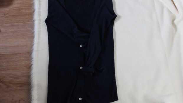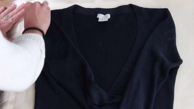 Doble a la mitad (con mangas todavía plegable) la Rebeca