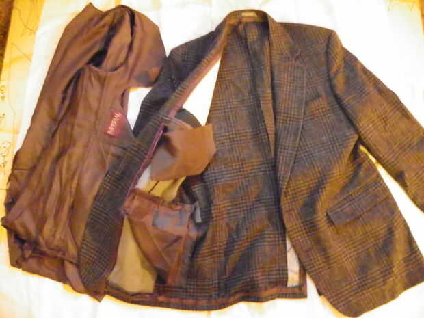 opté por una capa de lana cuadros bonito traje. Pensé que esto haría que un buen chaleco. El primer paso fue cortar el forro y lo tiran. Retire los botones con un descosedor y agregue a su frasco de botón. ¿No tienes un tarro de botón? Bueno, por todos los medios que usted consiga uno iniciado... Dejar la costura central trasera intacta pero la chaqueta aparte y separar las piezas. Más capas de juego tendrá la parte inferior de la espalda abierta, cosí esta cerrado todo lo que yo podría utilizar para la parte posterior del chaleco.