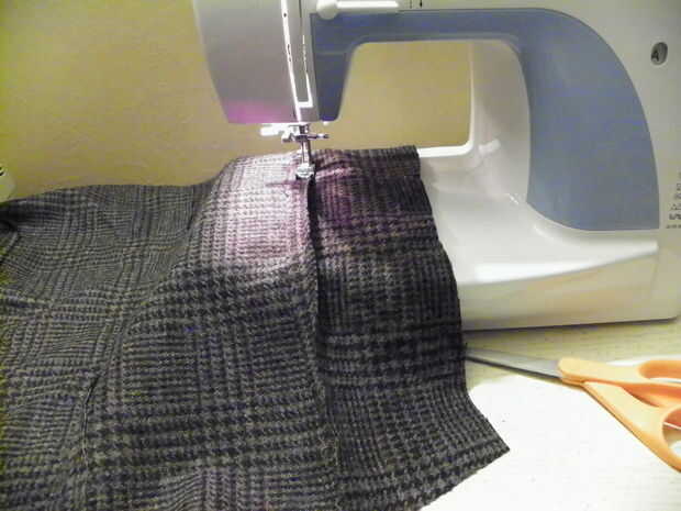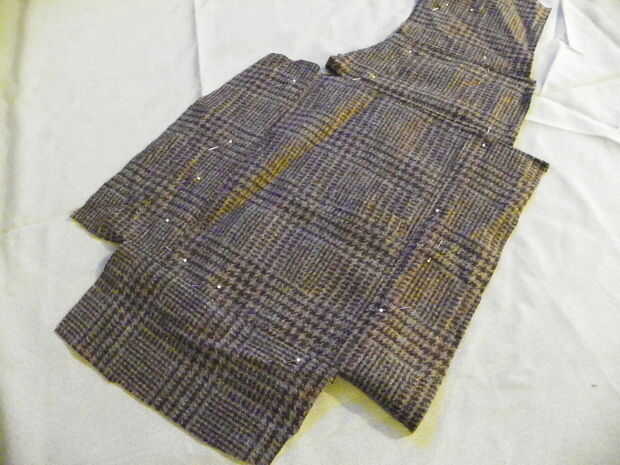 Corte por la parte trasera del chaleco del primero ya que es la sección más grande. Cortar las mangas para arriba y agregar las tiras para que sea lo suficientemente grande. Abrir las costuras y puntadas de la máquina hacia abajo. Este paso es importante para mantener las secciones acostado. Si vas a usar el bolsita, recorte 1" todo alrededor y colocar esta pieza en la parte superior del frente de la guarnición. Seguir añadiendo trozos de la chaqueta a la sección que está trabajando hasta que sea suficientemente grande. No incluso intento coincidir con el de cuadros, pero probé a cortar las líneas en el patrón.