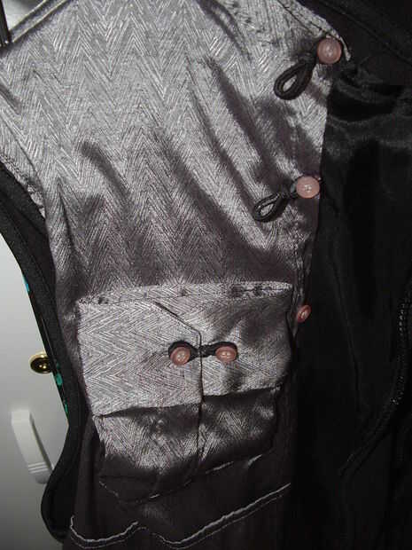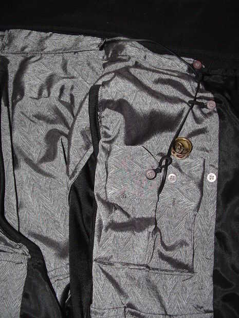 Debajo del bolsillo de la manga, dobla la cola de la camisa hacia arriba, dobladillo en los bordes para hacer un bolsillo grande y luego coser justo por la mitad del mismo para hacer 2 bolsillos más pequeños. Estas son buenas para la celebración de su botella de agua y sus gafas de sol. Puedes poner velcro o algo sobre ellos para mantenerlos cerrados.