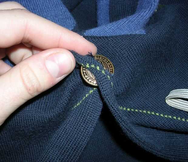 Hace poco compré un suéter de una tienda a hacer de mi pata punto. Después de que el proyecto fuera hecho todavía tenía la mayoría del suéter de la izquierda. Con el botón de hueso falso y el doblez sobre el estilo inspira para crear una caída funda