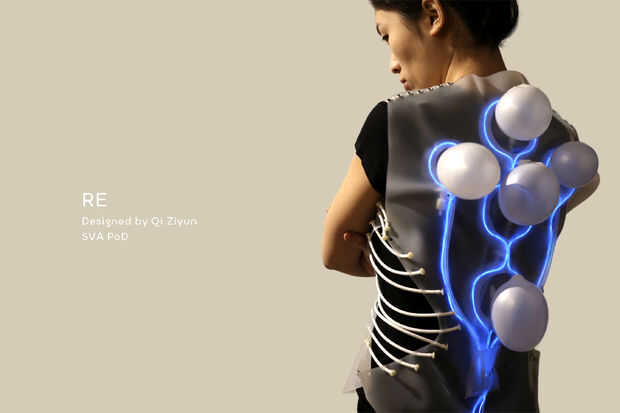 Los trabajadores de oficina están constantemente encorva sus ordenadores portátiles y ordenadores durante largas horas todos los días. Esto provoca dolores de espalda y una mala postura. El chaleco inflable es un recordatorio interactivo para las personas a corregir sus malos hábitos. Las burbujas de cada 20 minutos se inflan, obligar al usuario a estirar hacia atrás y manualmente desinflar la burbuja. Esto hace que los usuarios participar en una escapada a ejercitar sus músculos y estirar la espalda.