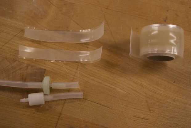 Atar con cinta de rescate. Que sea apretado para que no se escapará el aire hacia fuera.