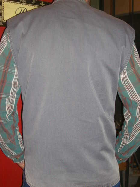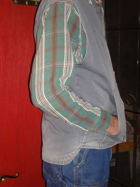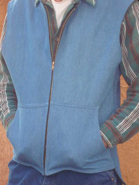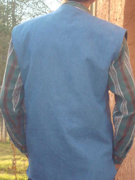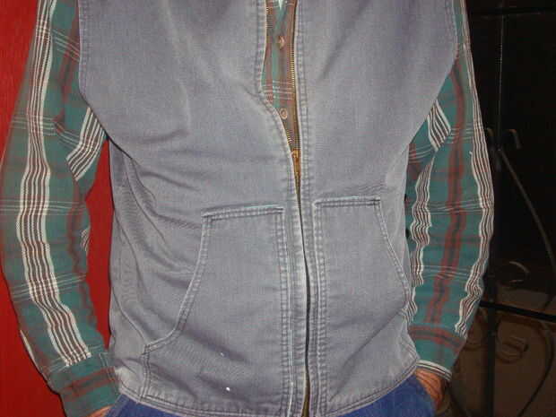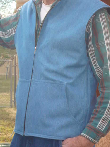 buscando un regalo de San Valentín súper fácil hacer el San Valentín? Este chaleco es rápido y fácil de hacer y no necesitas mucha experiencia de costura para hacer uno. Si usted puede coser alrededor de una curva uniformemente, su bueno para esto. Mi esposo siempre está frío y le encanta llevar chaleco, pero nunca puede encontrar uno que se ajuste en la longitud. Finalmente empecé a hacer sus camisas y chaleco así que podía usar ropa que caben, en los colores que le gusta. Hice este chaleco de un patrón hace unos cinco años. El chaleco le encajan perfectamente así que había arrancado todas las costuras y utilizar el chaleco para hacerle dos nuevos. Era muy reacia a dejarme para destruir su chaleco favorito aunque. Este chaleco es de lana con una cremallera. Es rápido y fácil de hacer. Puedes ver que el chaleco viejo estaba muy desgastado.