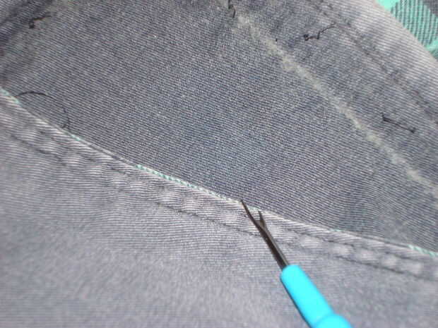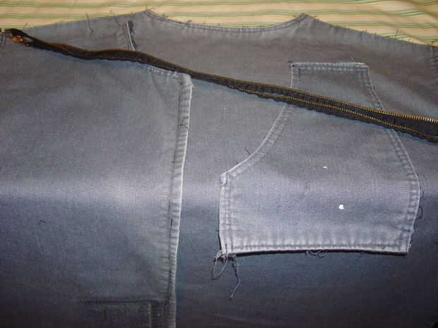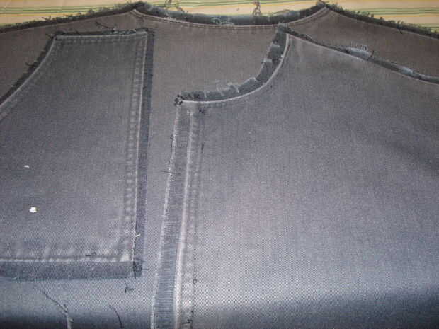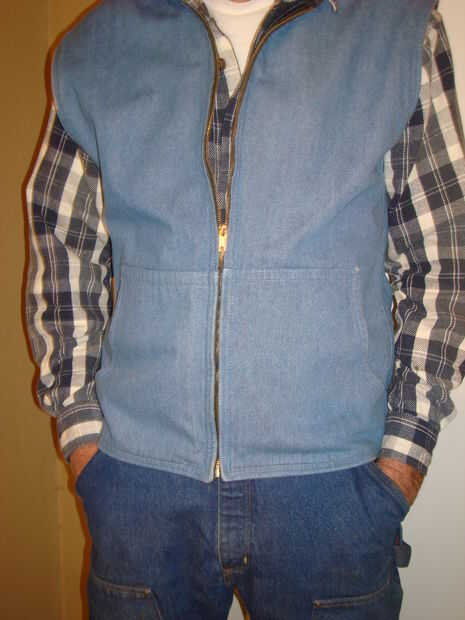 Un chaleco con todas las costuras, hilos de rosca y bolsillos quitado y presiona.