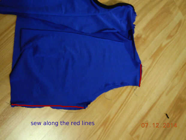 ¿has visto esos chalecos gran drapeado y fluir hacia abajo la parte delantera?  ¿Quieres?  Yo también.  Esta es una manera para que sea simple, de un simple (leer "llano" aquí) camiseta.  No hay máquina de coser, nada más que unas tijeras y un l
