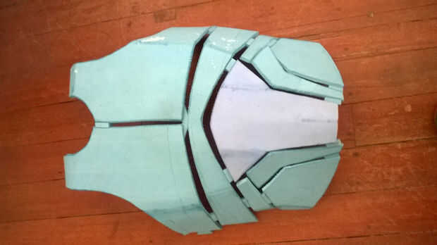 Una vez he sido capaz de cortar la porción del pecho del chaleco, tomó uno y ver si coincide con mi marco. Estaba satisfecho por la dimensión, así que sólo lo volcó y dibujó la otra mitad para conseguir el mismo tamaño que el otro. Se puede ver he añadido otra sección sobre los abdominales de lado ya que cometí un error en la elaboración de la sección media parte del chaleco. Cuando terminé de cortar todas las piezas que tomó mi soldador barato y algunos muy luz pasa sobre los bordes a la vuelta de ellos un poco. Tomó un papel de lija (grano 600) y redondeado y suavizar un poco más.