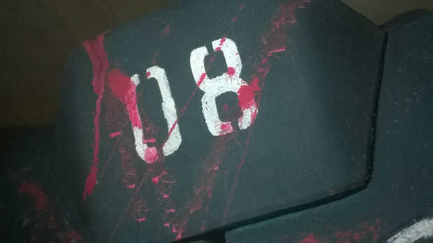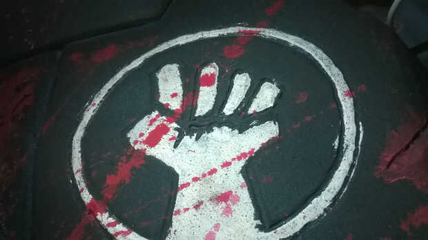Utilizando el color del agua, había pintado sobre el emblema grabado y añadido algunos rojo sangre para que coincida con el diseño del casco. Que también seco para una buena 30 minutos a una hora para asegurarse de que el color del agua se ha secado completamente.
