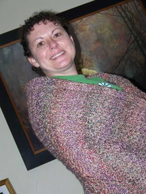 aquí es un lujo mantón caliente que hice con un viejo mantón georgett en ningún uso para mí. Estoy tan sorprendido que resultó tan agradable y muy útil mantener el cuello caliente en este tiempo frío.Compré 2 rollos de hilo de tejer para € 80 centavo