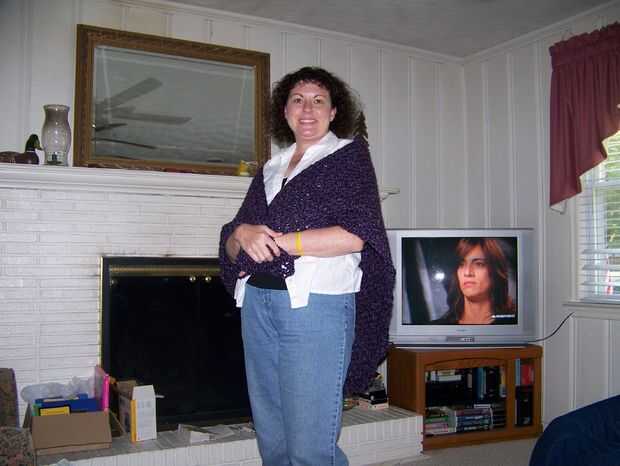 20 de febrero - después de haber terminado mi afgano, estoy haciendo un chal de oración, http://www.shawlministry.com/ para el papá de mi amiga Cathy. Cayó y se rompió y había desplazado seis costillas la semana pasada cuando estaba en la bolera. No