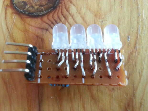 Para facilitar la flexión, nos marca la distancia de la placa perforada en cada pin todos los LEDs. De esta manera es muy fácil doblar el conector de la faja necesaria. Tenga en cuenta para mantener siempre la misma "orientación" de sus LEDs. En este caso el Pin 3 es siempre el ánodo.