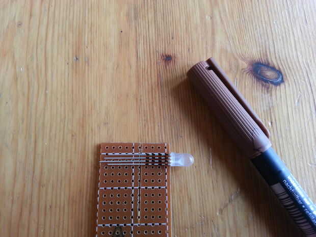 Luego conecte el LED en la placa perforada.
