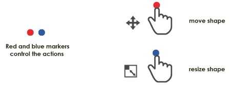 - Usuario respectivamente ahora puede usar los marcadores rojos y azules para traducir y escala la imagen proyectada.