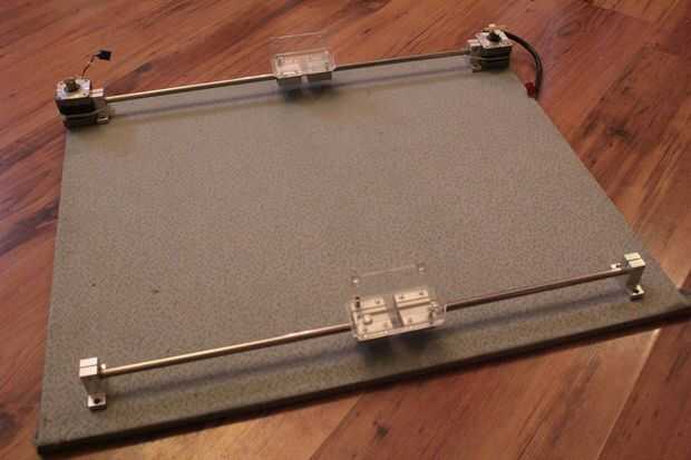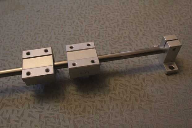 Ahora tenemos que montar las barras de eje de x en la base de cartón. Utilizamos soporte del árbol de sk8 para montar las dos varillas paralelas de 8mm para la base (estén paralelos más montaje de láser no se moverá correctamente). También, inserte dos sc8uu cojinete en cada barra del eje de x. Esto nos ayudará a armar el eje y en el siguiente step.stepper