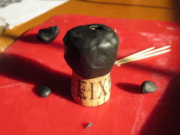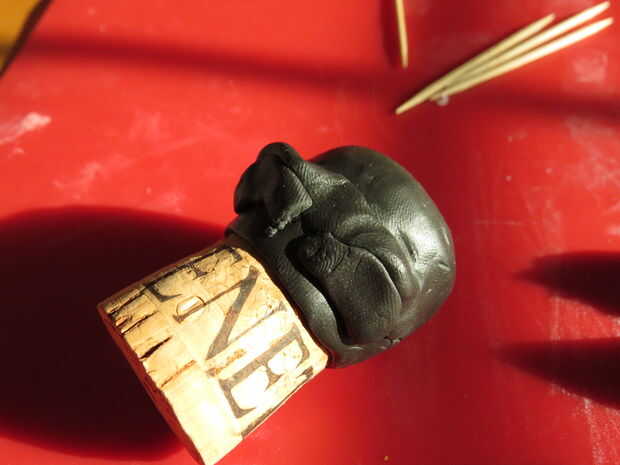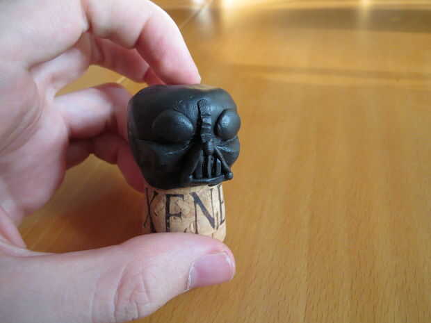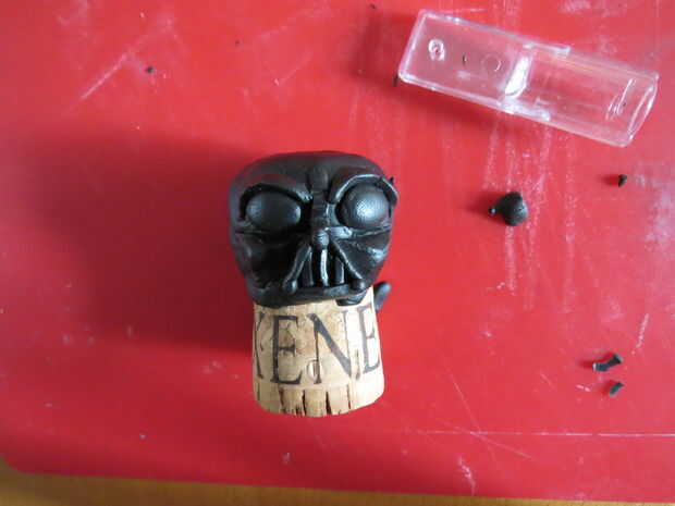A pesar de que resultó muy bien, por favor, no lo se como esta. Modeló la máscara alrededor de un corcho, y como yo al horno el Sculpey el corcho expandido, causando todo para romper para arriba. Tan hagas lo que hagas, no cueza al horno la máscara sobre el corcho mismo.