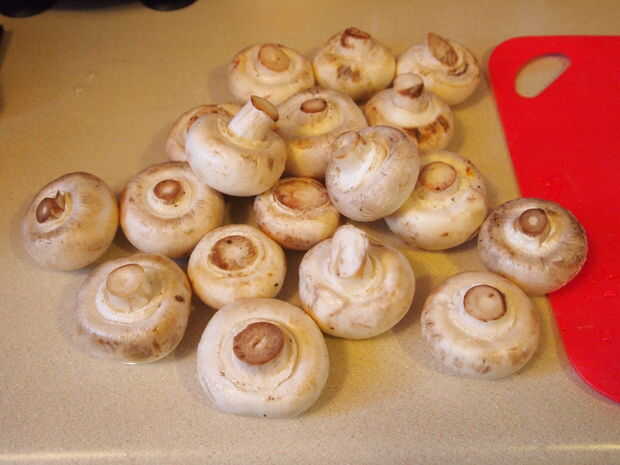 Hacer dos versiones de esta receta. un vegetariano amistoso y el otro no...Me sorprende cómo rápido estos no ir importa que receta usar.Paso 1: Saltear los champiñones Limpiar las setas tapas y luego quite y guarde los tallos.Me gusta saltear los cha