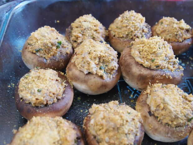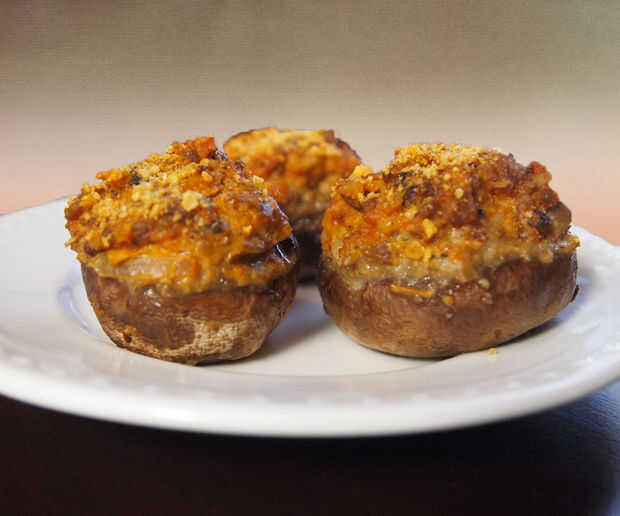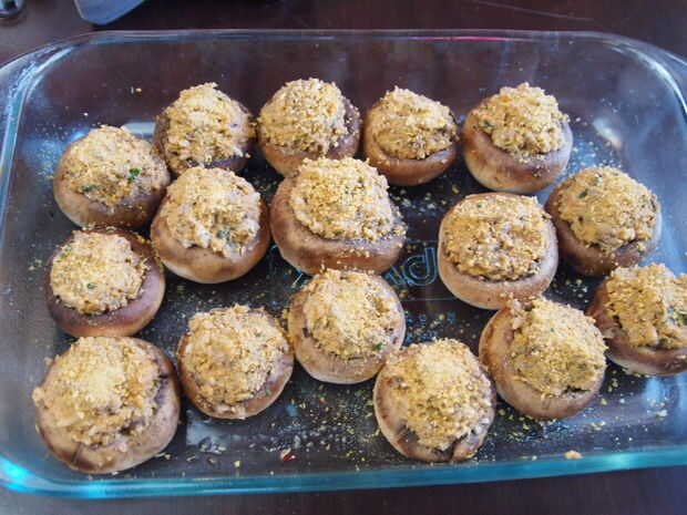 Por último, rellenar las tapas setas con el delicioso relleno (no ser tacaño con él - realmente les llene encima) y rematar con algunos más pan rallado. La textura y el sabor realmente equilibra todo. ¡ Listo! Por favor, disfrutar de ellos - ya que son altamente adictivos y vale la pena los pequeños pasos que tomó para hacerlos!