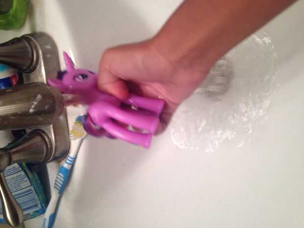 Luego moje la crin y la cola. Se recomienda agua tibia. Si su caballo tiene alas como el mío, retirar.