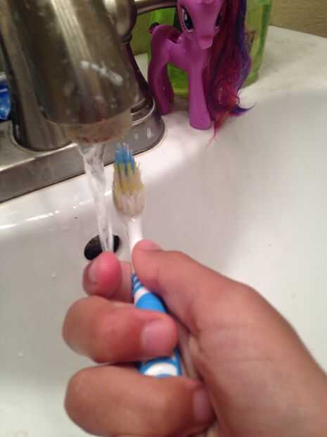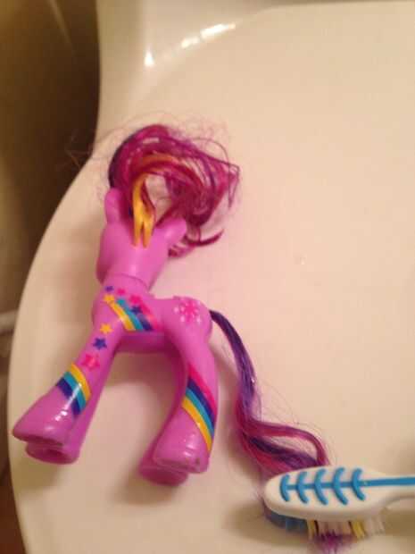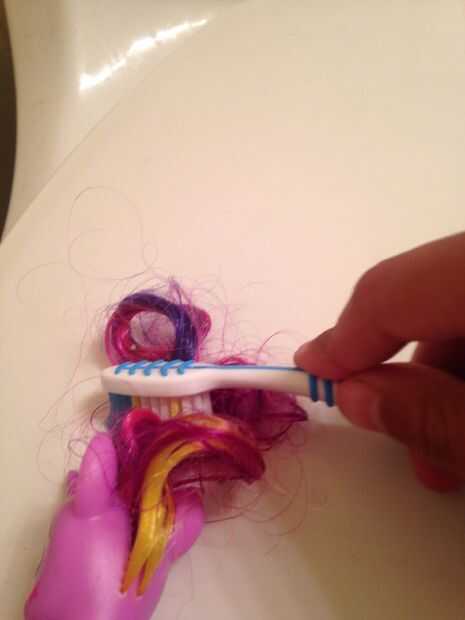 Ahora que mojar el cepillo de dientes y cepillar su melena y la cola. Hacer esto hasta que aparezca espuma.