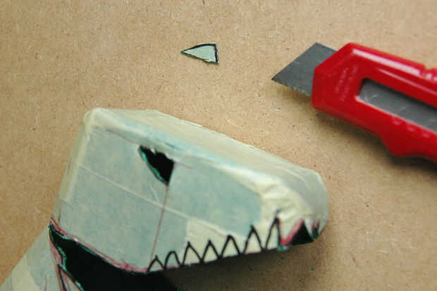 Corte los dientes en la quijada más baja y las incisiones a ambos lados como en la imagen.
