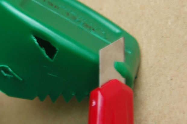 Utilice la herramienta de corte para cortar las esquinas para hacer la nariz.
