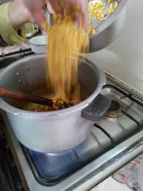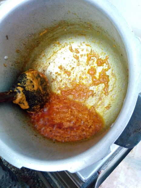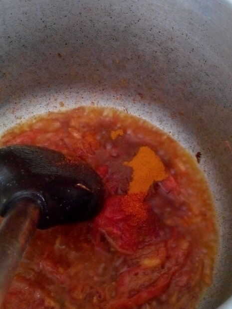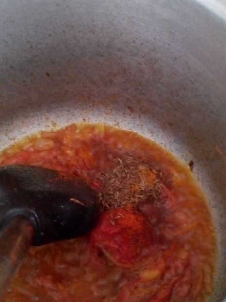 - ahora añadir especias (cúrcuma, zeera, energía Chile) cocinar hasta aceite separado
