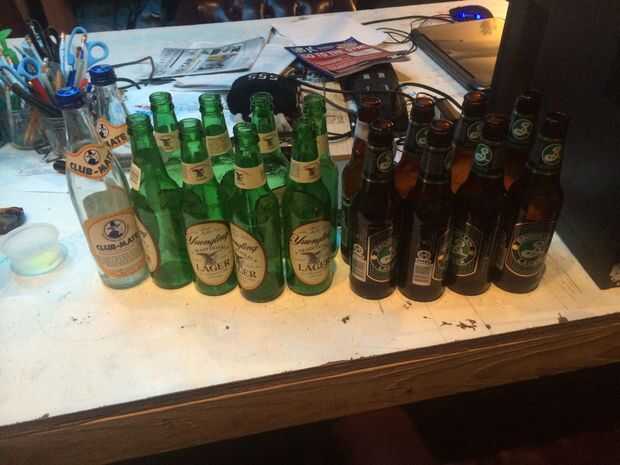 Una vez que tiene las botellas de cerveza vaciadas (y lo suficientemente sobrio), necesita darle una limpieza a fondo. Enjuague fuera pero conservar las etiquetas de los deseados.