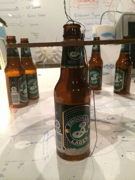 Toque el resto del alambre juntos--no arreglarla! Esto finalmente nos reunirá todas las botellas antes de hacer un bucle en el centro para colgarla de. Ahora hacer esto con todo el resto de las botellas. Luego todo se tuerce el alambre balling traer a medio girar juntos y agregar más alambre achique para tejer y unen en un lazo.