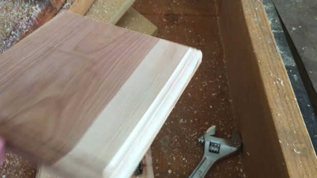 La base se puede cortar de cualquier pieza de madera y acabada en cualquier forma deseada. La base usé fue cortar y cepillar hacia abajo de una paleta y dada una ventaja enrutada clásico y acabada con laca spray.