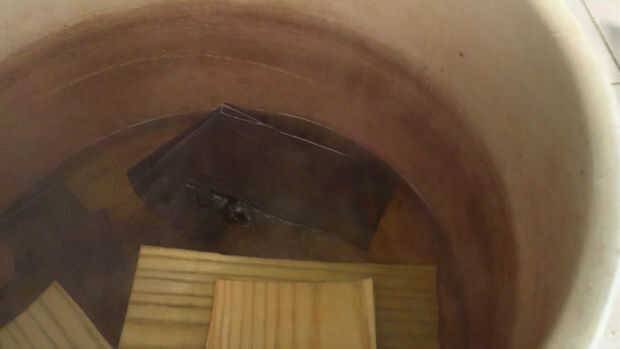 Cortar la madera a un tamaño que quepa en la olla que vas a hervir o al vapor la madera. Me gusta ponerlo en agua hirviendo, simplemente porque me permitía un tiempo de trabajo a la curva y la madera de flex. Una vez que la madera comienza a encresparse en la olla, puede quitarlo y comenzar a trabajar en el formulario.