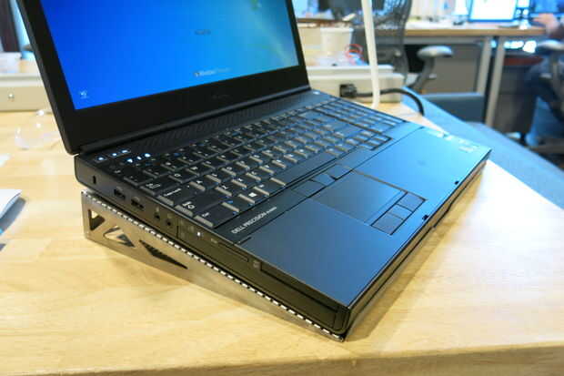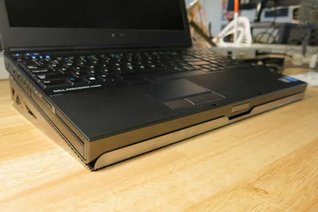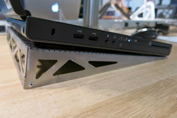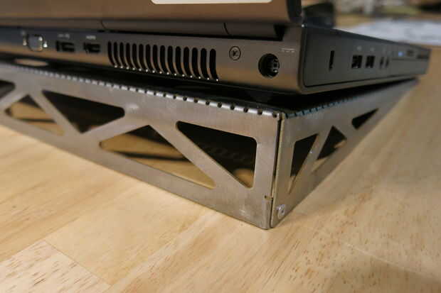 Prestar atención a donde están los "pies" de la laptop. Querrá volver a sentarse en una superficie sólida (no más de un agujero) para evitar que la máquina de rayar o mecedora.