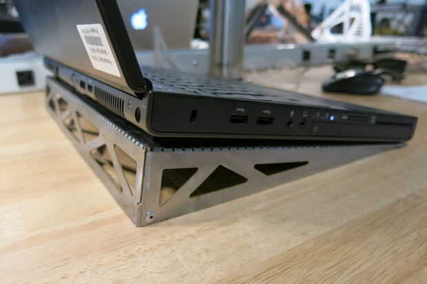 Este Instructable le mostrará cómo hacer una sola pieza chapa bandeja para un ordenador portátil de refrigeración. Levantar la parte trasera de la máquina una pulgada o dos permiten suficiente circulación de aire y ventilación para mantener el equipo fresco y feliz (y los dedos de la cocina). Un beneficio adicional es que se inclina el teclado (a 10 grados en este caso) para una posición más cómoda de escribir.