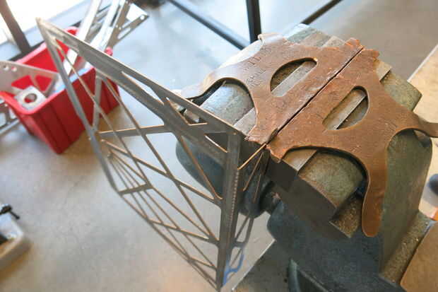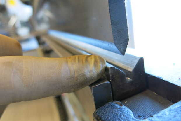 A continuación, sujete el acero en la prensa como tal.