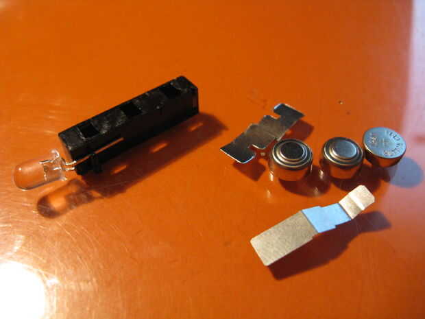 --Puesto que el soporte de la batería es demasiado largo para caber en las chapas, tuve que cortar una sección de la batería y pegarlo al lado de los otros dos como se muestra en la imagen.
