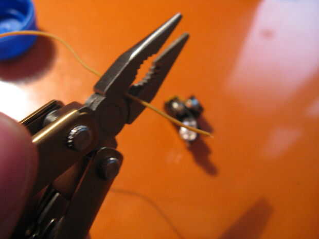 -Añadir las baterías y conecte los trasladados uno a los otros dos con los alambres como se muestra en la imagen, asegúrese de obtener la polaridad correcta.