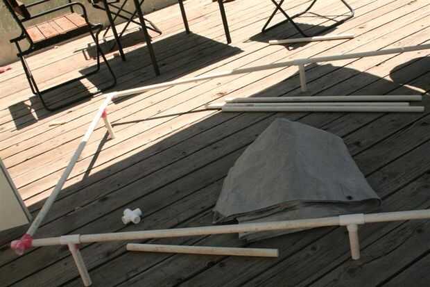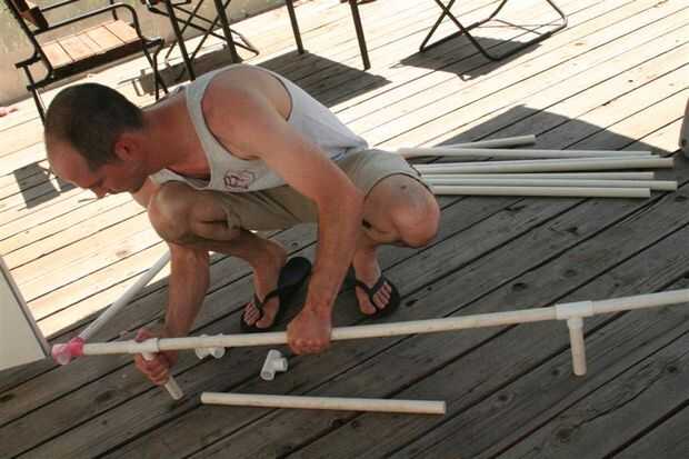(4) Utilice un pedazo largo en el otro lado. El marco es probablemente lo suficientemente fuerte con solo una pierna por la esquina, así que usted puede alternar las piernas alrededor de la estructura (Foto 2).
